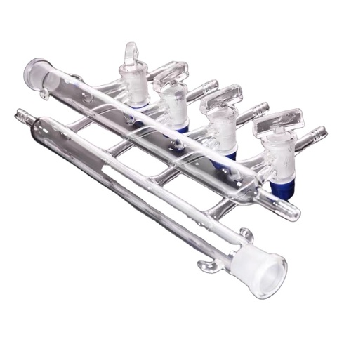 실험실 사용 3 4 5 6 포트 이중선 유리 진공 가스 매니 폴드 스톱콕이있는 Schlenk 라인